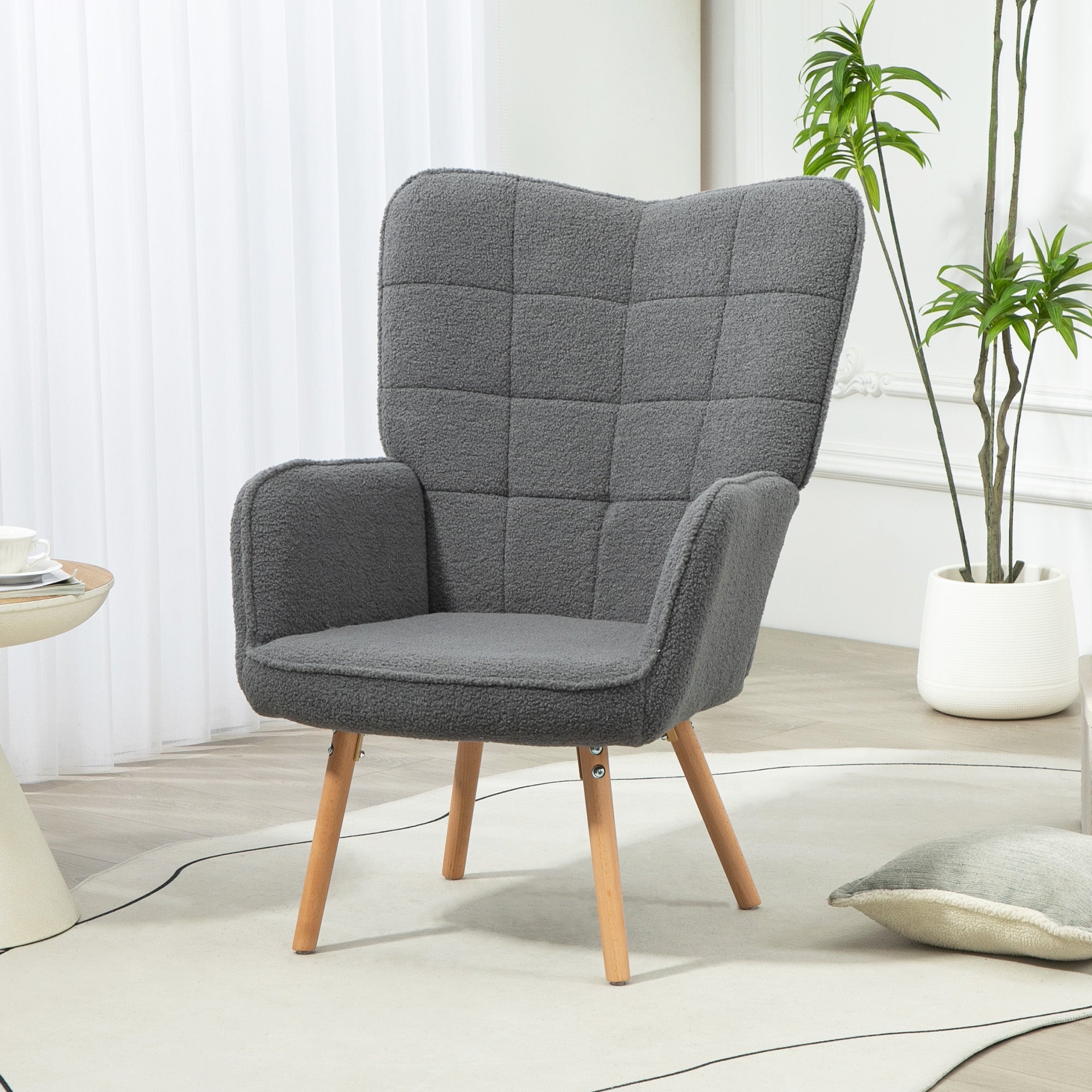 Make a modern impact at home with this occasional chair. Large design, winged shape and quilted design all add together, to result in a striking look suitable for bedrooms, living room and the study. Filled with thick foam for comfort and a high back and arms for support, this living room chair is wrapped in velvet-feel upholstery for sophistication. Finished with four naturally-polished wooden legs for support.