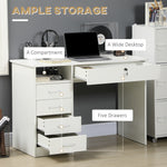 Require space to work and keep all office supplies organised? Then go for this computer desk with drawers. Comes with a wide table top and under-desk space to work from, shelf and five drawers. The below-desk drawer can be locked for security; two keys included. Compact design great for smaller spaces, particle board structure is sturdy and tough. The desk with storage is finished with handles on the left-side drawers to open and close easily.