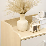 This shoe storage cabinet has three inner shelves, holding up to nine pairs of shoes. You can remove shelves to fit ankle boots and high heels. Also, you can store and display your keys, photo albums, etc. on the top shelf. Made from particle board for durability, with anti-tipping straps included for safety.