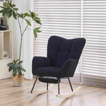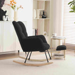 Teddy Fabric Upholstered Rocking Chair with Pull-out Footrest, Ergonomic Backrest, Modern Rocker for Reading, Relaxing, 80x70x95 cm, Black