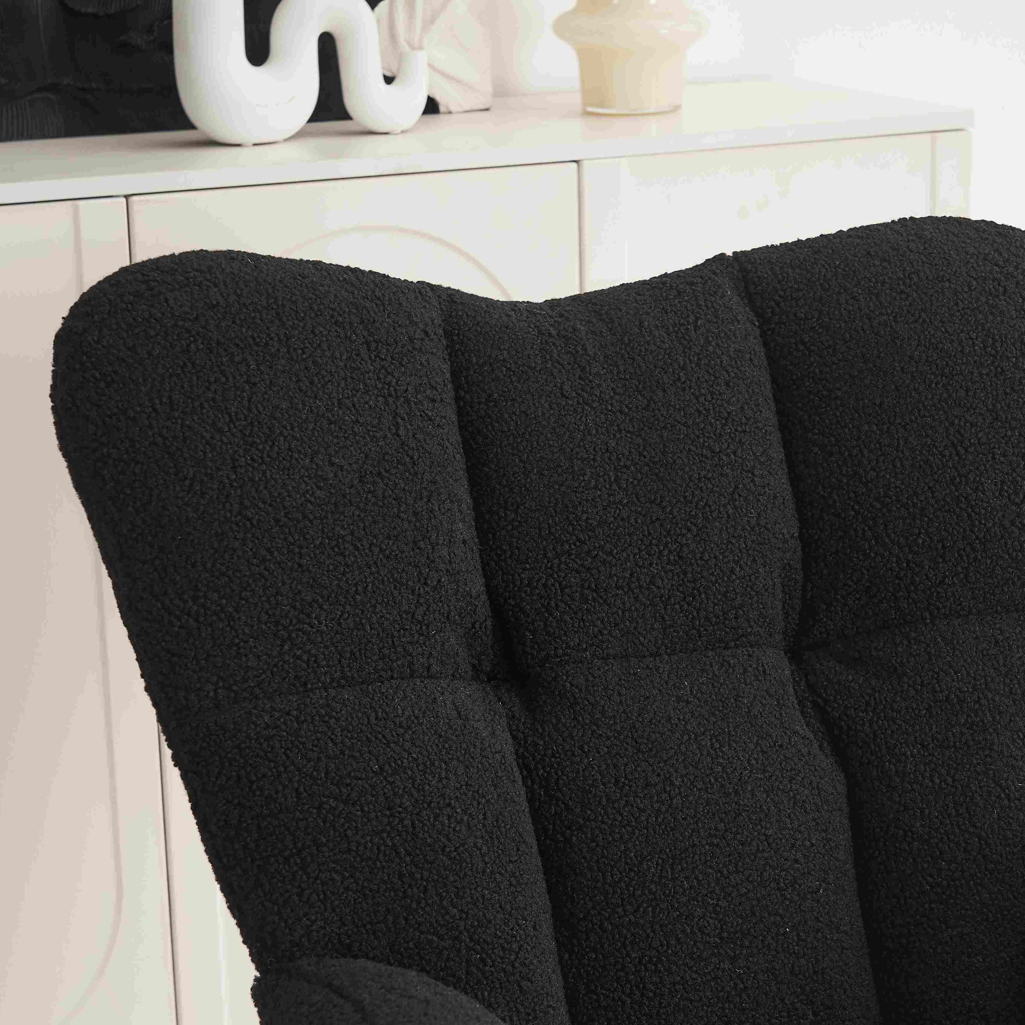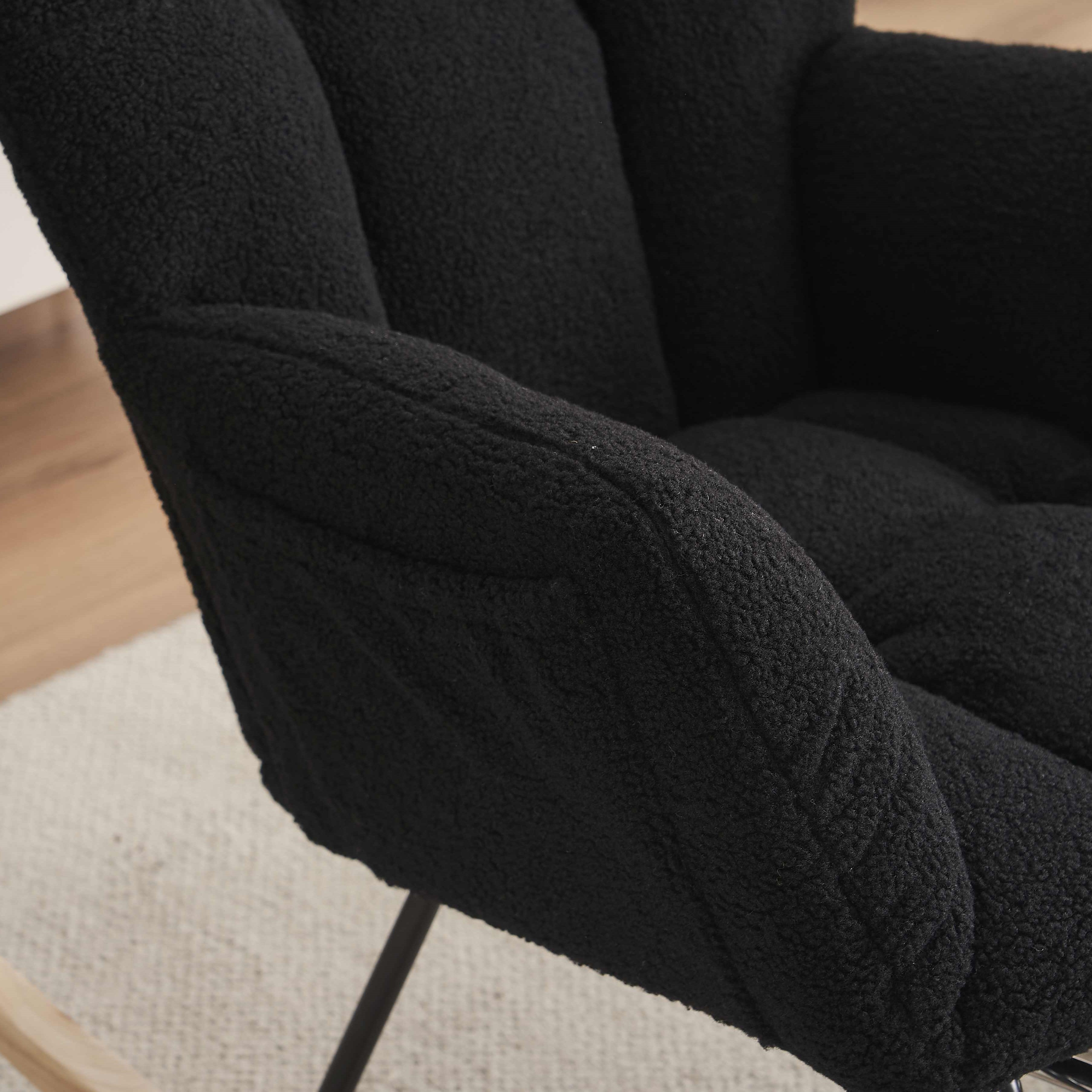 Material: Teddy Fabric, Foam, Wooden Frame, Black Painted Metal Base, Wooden Rocking Legs