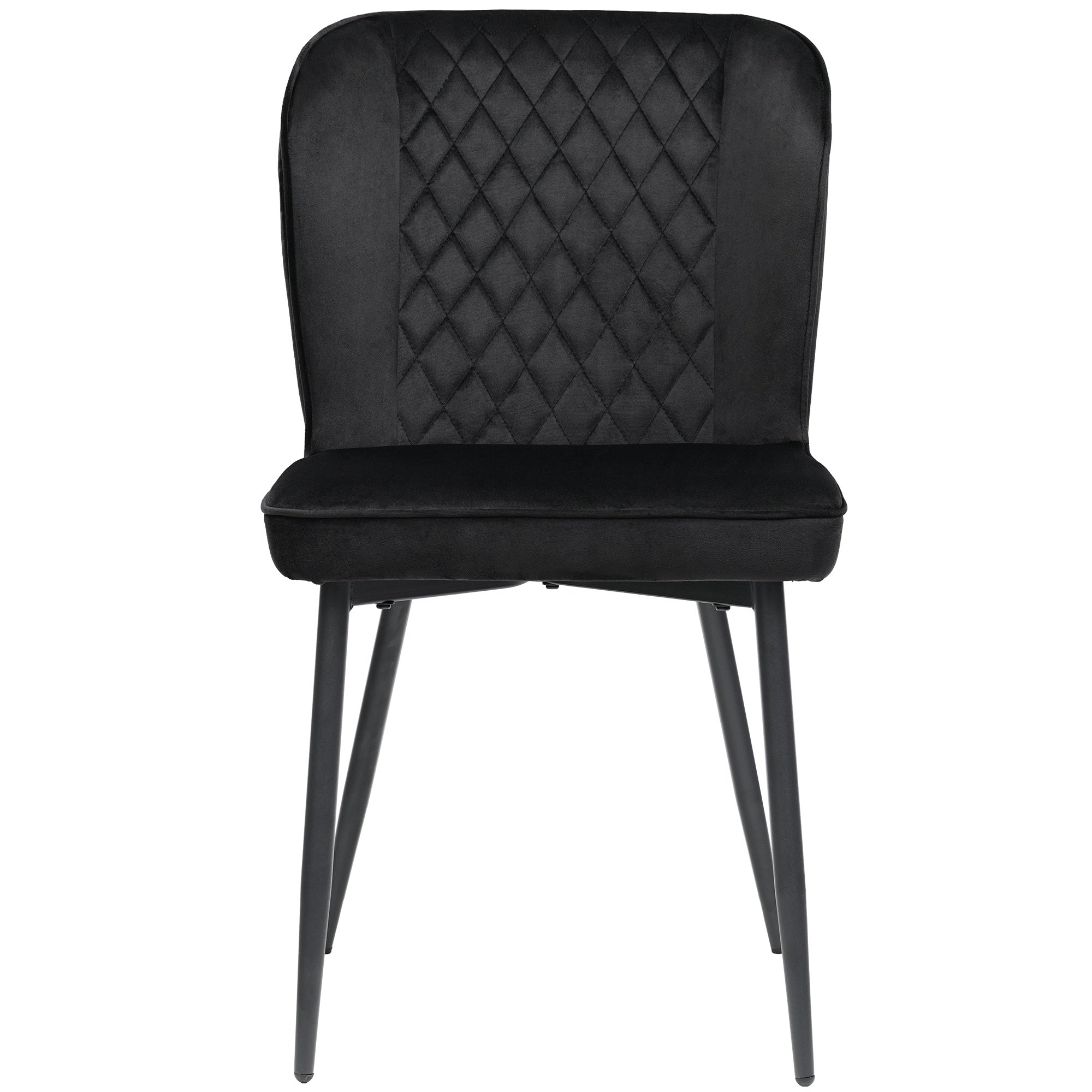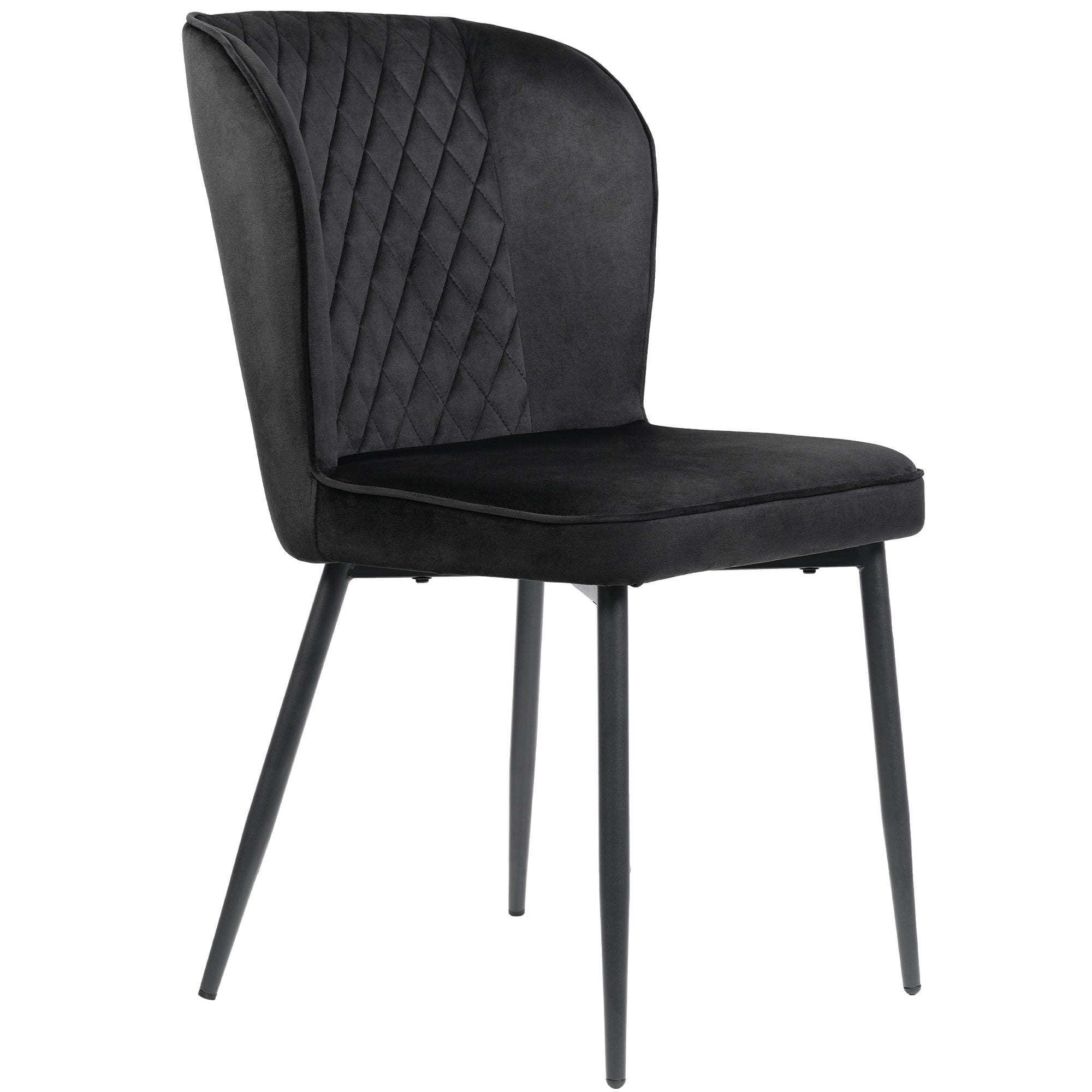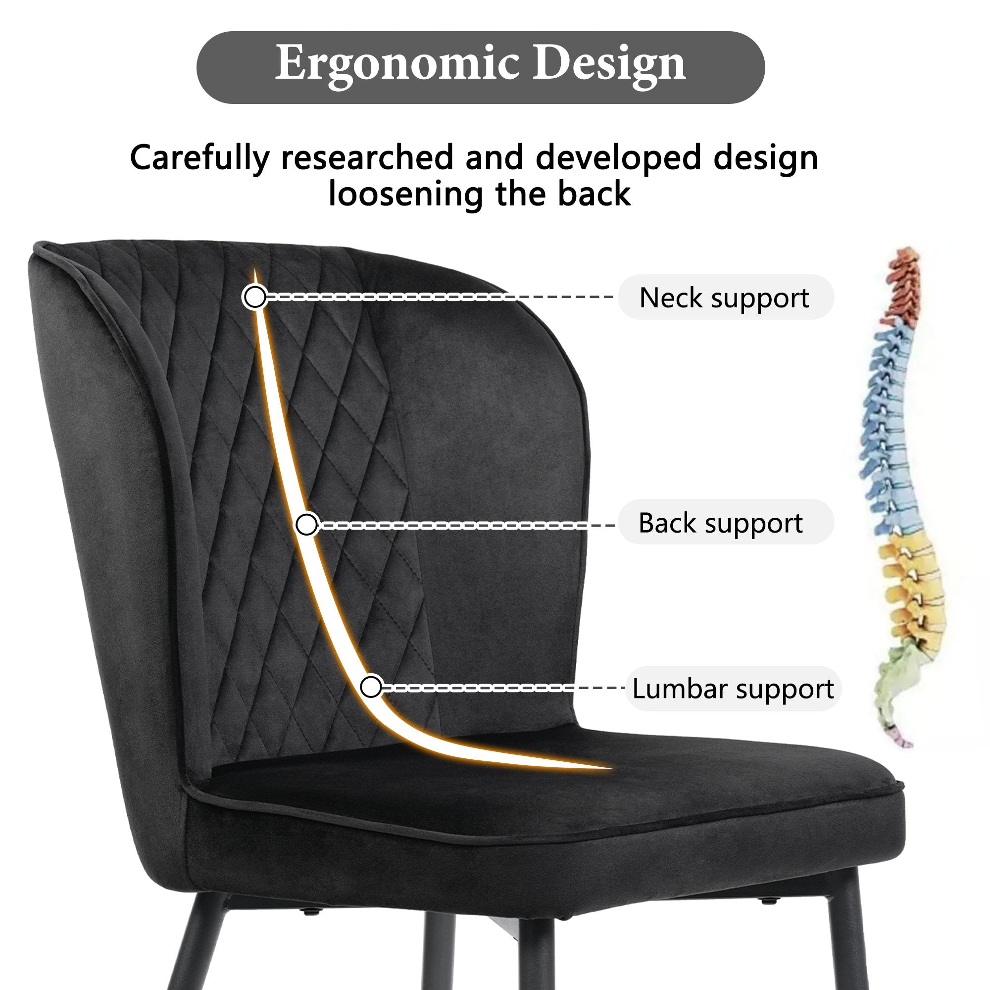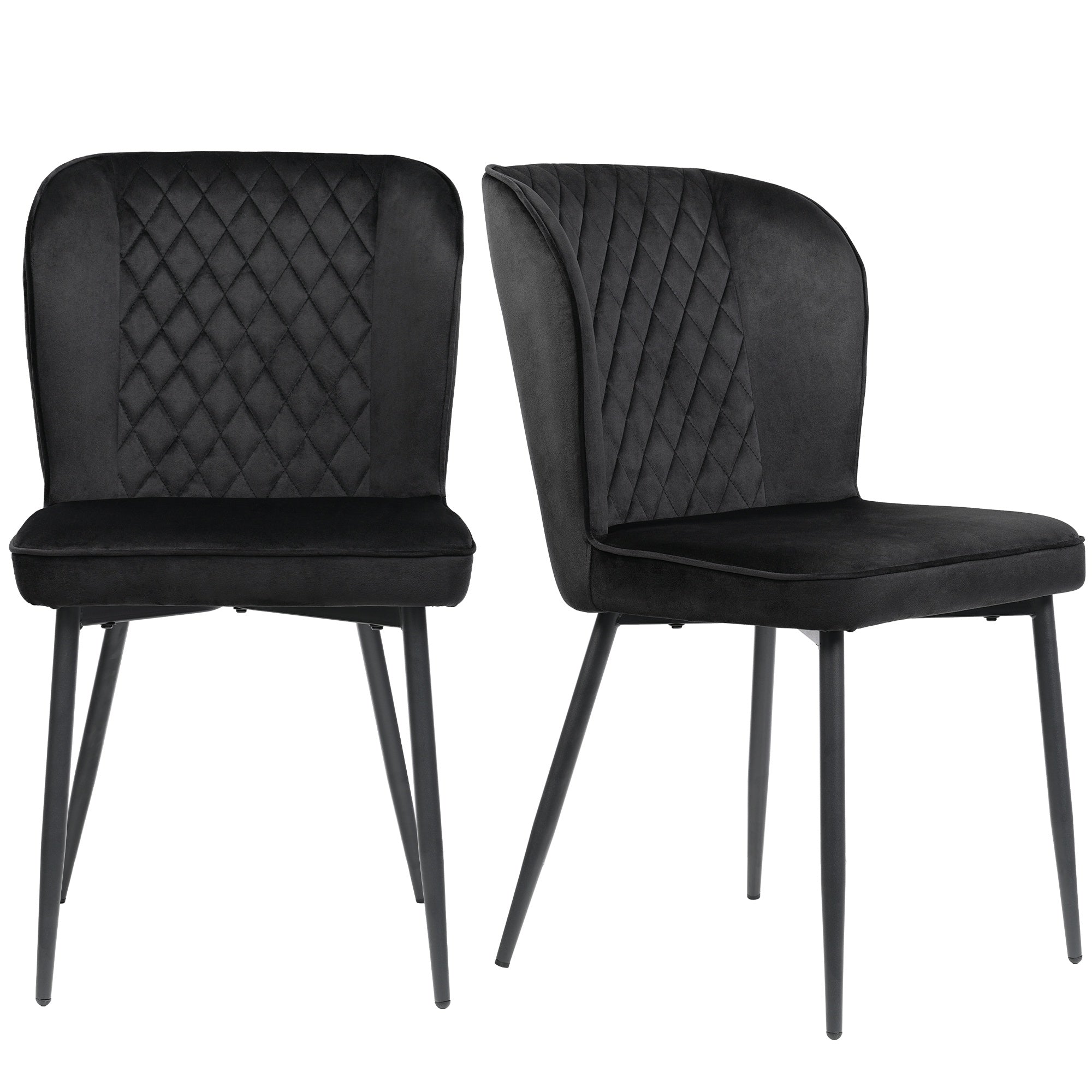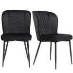 Set of 2 Velvet Black Dining Chairs with Metal Legs and Wing Back, Upholstered Accent Chairs for Dining Room, 47x43x86 cm, Black