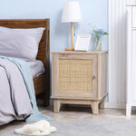 Bedside Table, Bedside Cabinet with Storage Cupboard, Side End Table with Rattan Element for Living Room, Bedroom, Natural