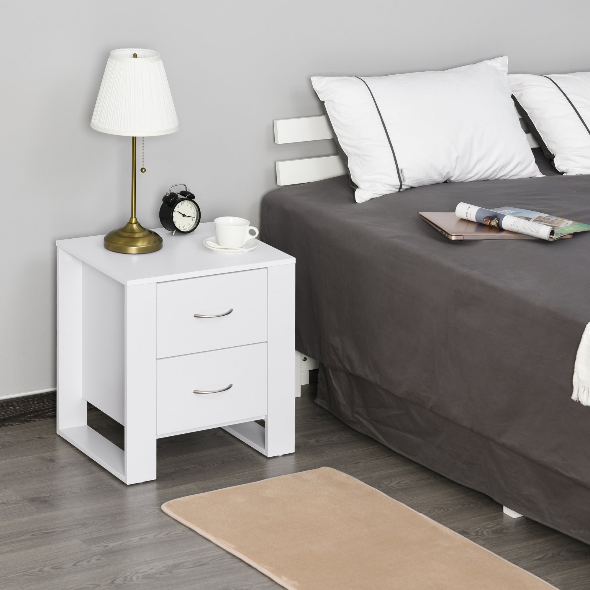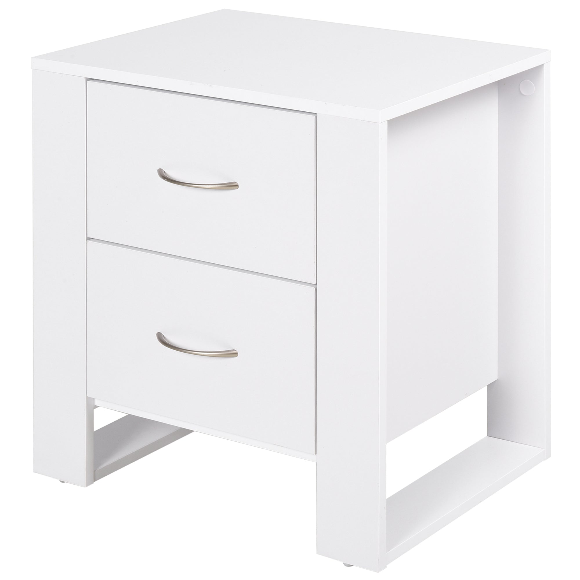Bedside Table with 2 Drawers, Nightstand with Handles and Elevated Base, Side Table for Bedroom, Living Room, White