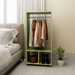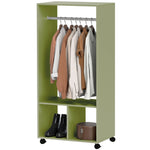 Open Wardrobe on Wheels, Bedroom Wardrobe with Clothes Hanging Rail, 2 Storage Shelves, Mobile Garment Rack for Cloakroom, Hallway, Green
