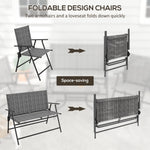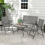 Outdoor 4 Pieces Patio Furniture Set with Breathable Mesh Fabric Seat & Backrest, Garden Set with Two Foldable Armchairs, a Loveseat & Glass Top Table, Mixed Grey