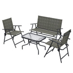 This outdoor furniture set from is a four piece of decor in any corner of any room in your home. Made of a steel frame and wrapped breathable mesh fabric ensures lasting durability. The table has tempered glass for stable refreshment placement and backrests offer optimal comfort. The 4 piece garden furniture set is essential for any garden or patio setting to complete a look in comfort and style.
