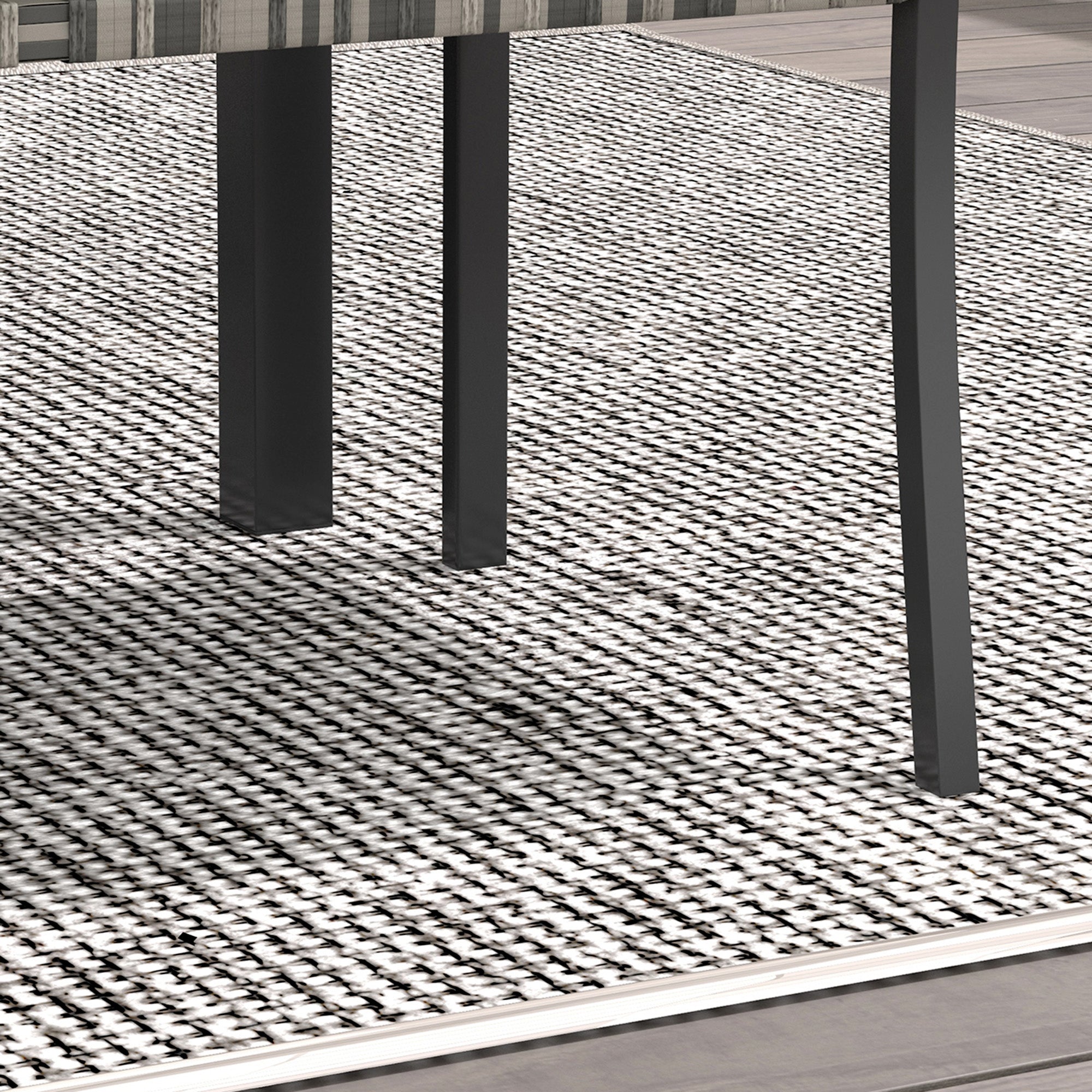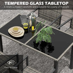 This four-seater outdoor dining set is for every garden and patio. Four rattan-seated chairs and table is great for you and your favourite people to sit together. The glass-top of the table can be wiped clean quickly: a safe dining surface. Galvanised steel frames for strength. Plastic wicker woven into a rattan design: an on-trend garden look, for this season and beyond.