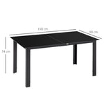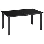 Outdoor Dining Table for 6, Aluminium Rectangular Garden Table with Tempered Glass Tabletop for Yard, Patio, Black
