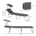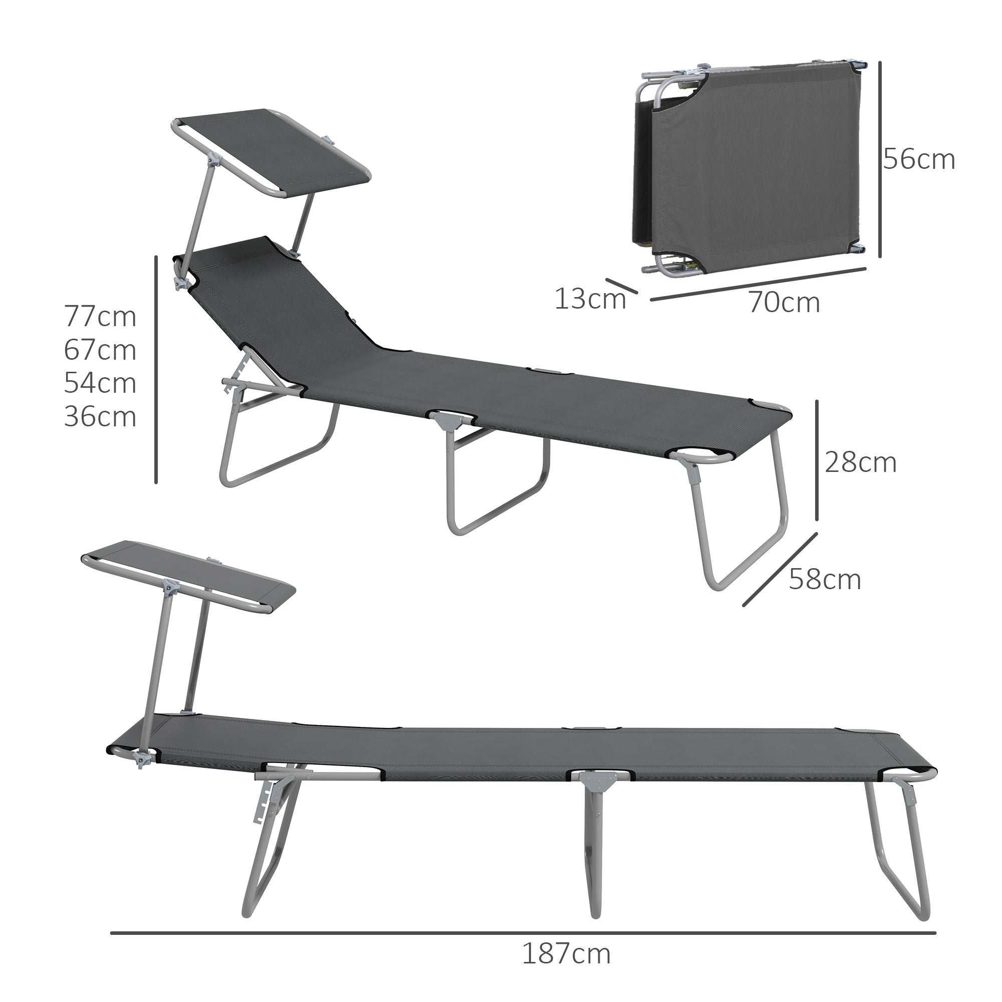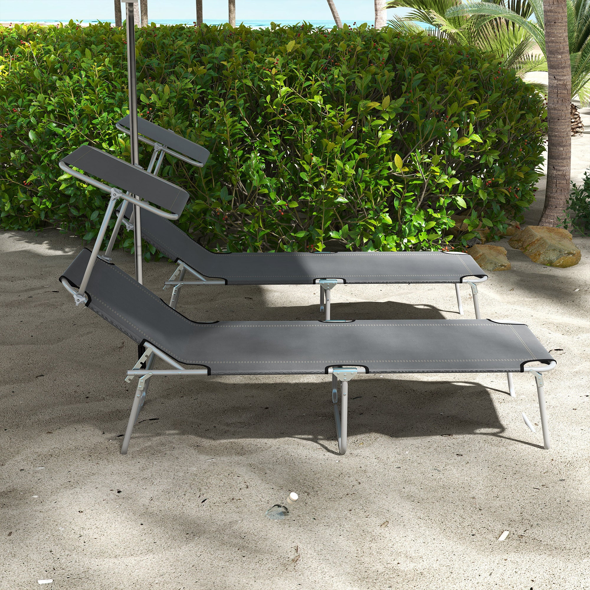 Outdoor Foldable Sun Lounger Set of 2, 4 Level Adjustable Backrest Reclining Sun Lounger Chair with Angle Adjust Sun Shade Awning for Beach, Garden, Patio, Grey