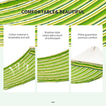 Outdoor Garden Hammock with Stand, Double Cotton Hammock with Adjustable Steel Frame, Swing Hanging Bed with Pillow, for Garden, Patio, Beach, Green Stripes