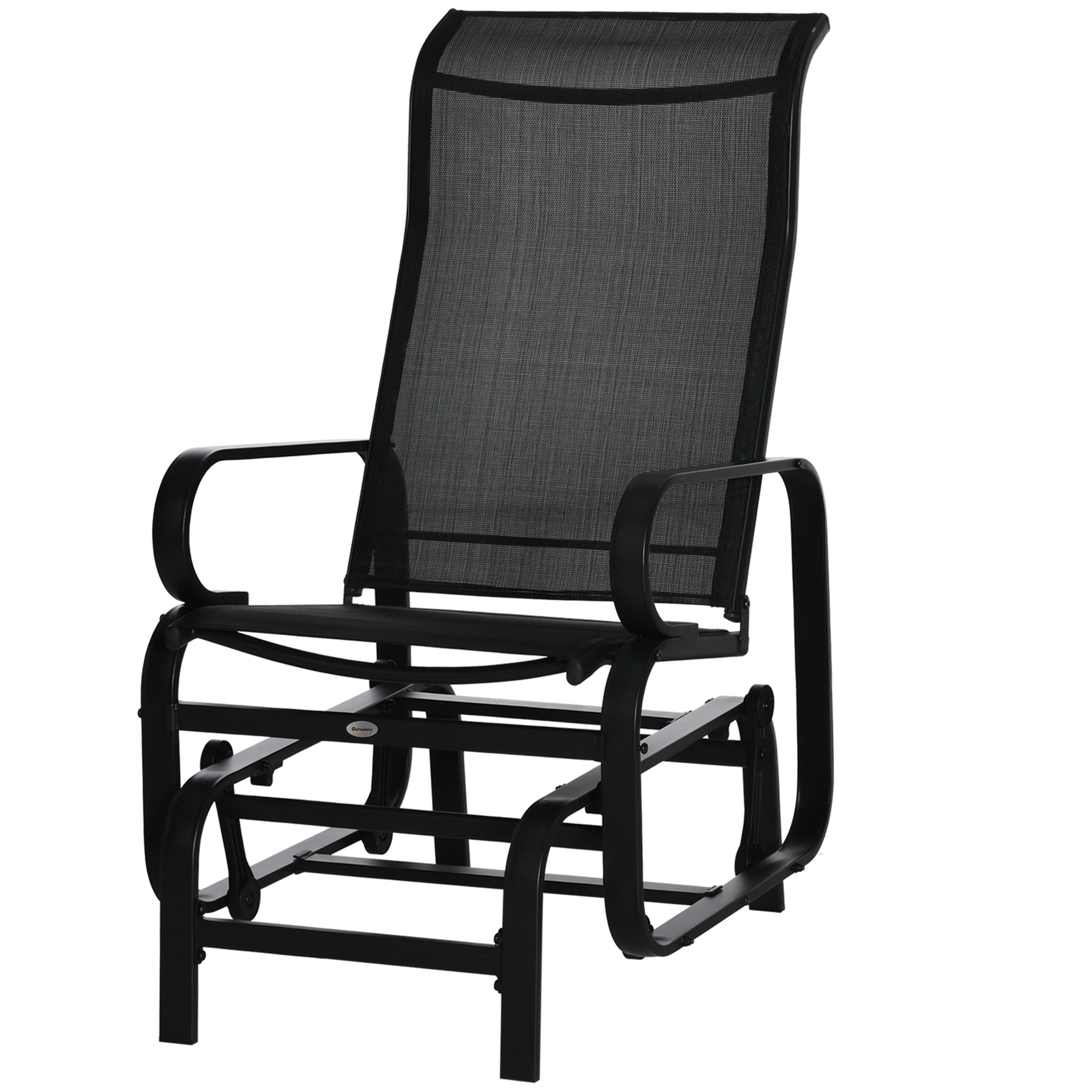Outdoor Gliding Rocking Chair with Sturdy Metal Frame Garden Comfortable Swing Chair, Black