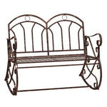 This 2 seater garden rocking chair is a great piece of furniture to have in your garden and patio. Made from metal in a bronze finish, it will be a great compliment to any home. The curved garden bench is a single seater with rocking function and comes with armrests making it comfortable while you enjoy the sunshine. This outdoor rocking chairs for adults are ideal items with decoration and seat function to have in your garden or patio places!
