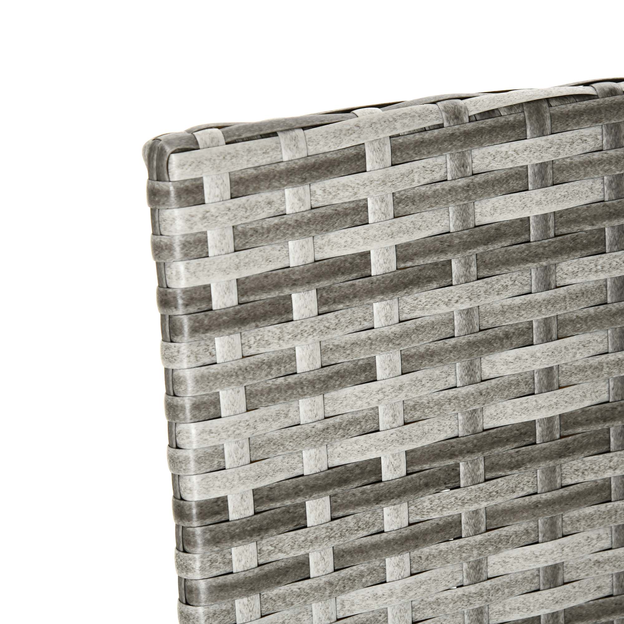 Powder coated steel frame for a robust structure, with mixed grey PE wicker wrapped around for durability and protection against light weathering