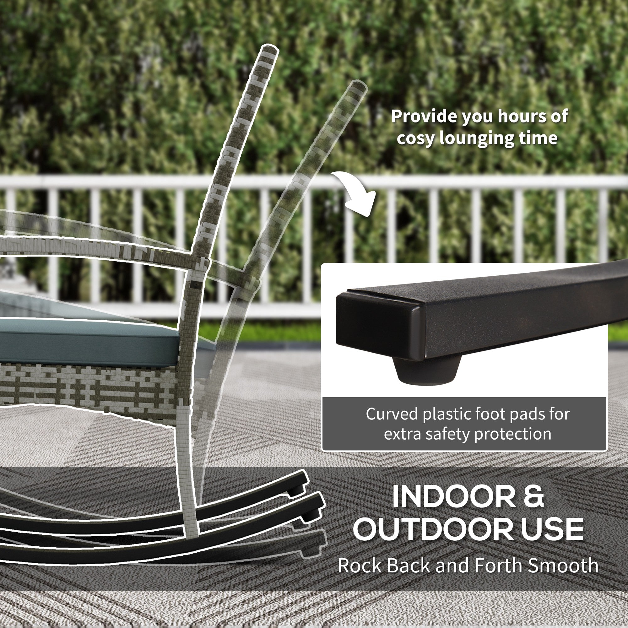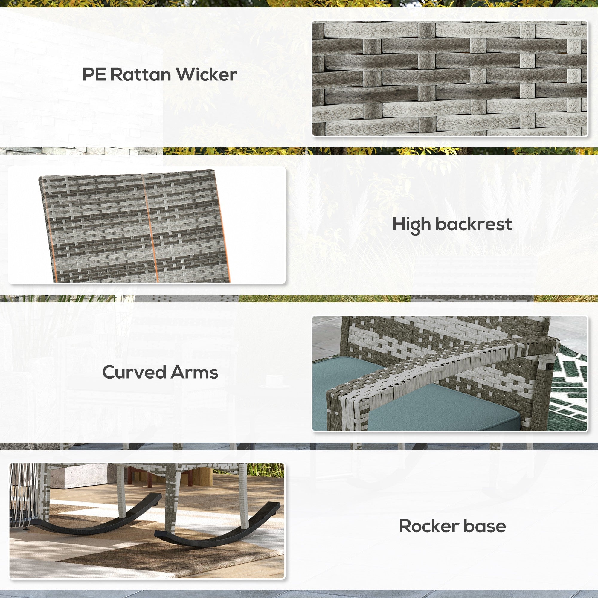 Material: PE rattan, Polyester fabric, Steel frame