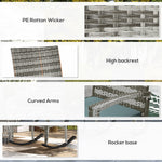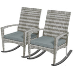 Outdoor PE Rattan Rocking Chair Set of 2, Garden Rocking Chair Set with Armrest and Cushion, Light Grey