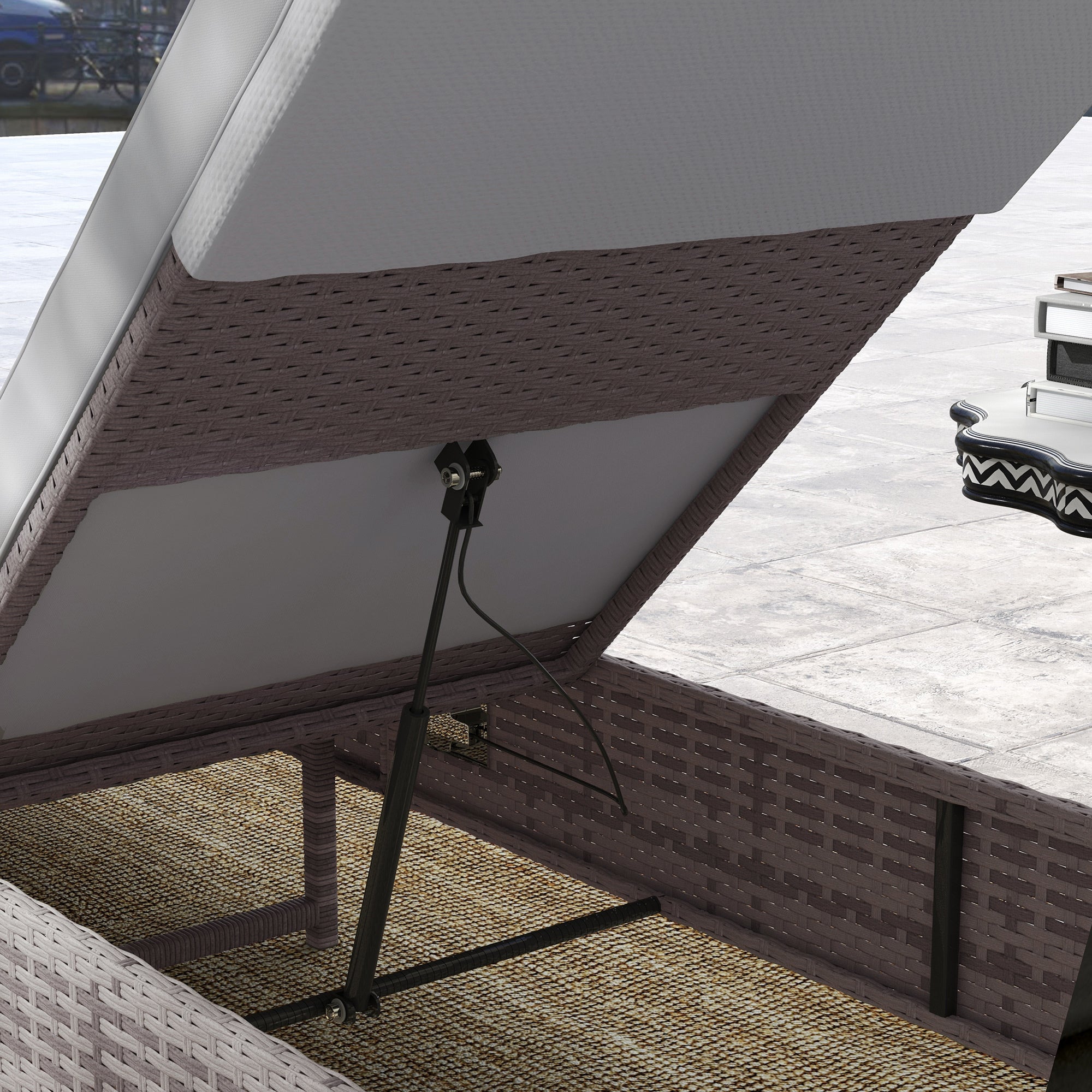Outdoor PE Rattan Sun Lounger Set of 2, Multi-position Backrest Adjustable Single Recliner Sunbed Daybed with Removeable & Washable Cushion, for Patio, Garden, Light Grey