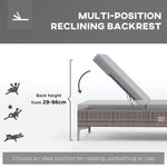 Comfortable lounging outdoors, made easy. This piece is perfect for getting your hit of sun when it comes out to shine. The long design holds all your body. The frame is made from steel for a strong core, wrapped in plastic wicker for double the protection - and a stylish rattan look. Set the back between 29-98cm - the air rod makes it is to adjust into place. Comes with a top cushion to keep you comfortable.