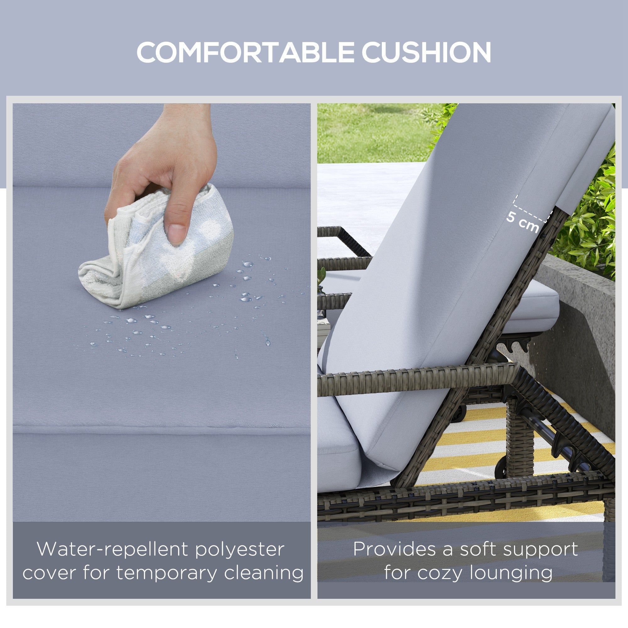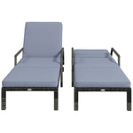 Outdoor PE Rattan Sun Lounger Set of 2, Wicker Chaise Recliner Garden Chair with 5-Level Adjustable Backrest and 2 Wheels, Dark Grey