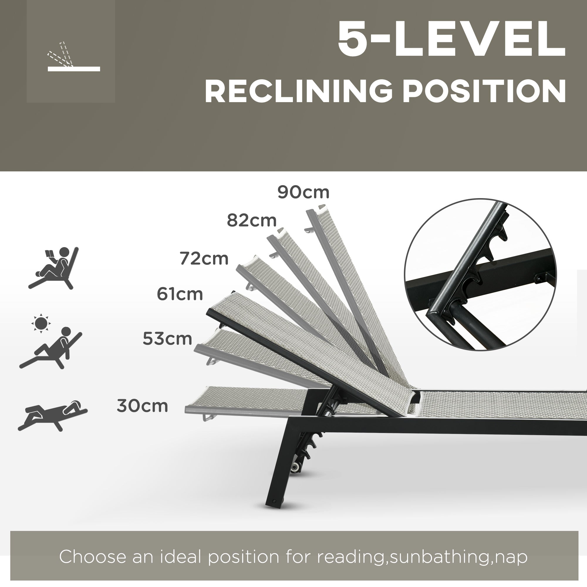 Five-position back: change the angle easily