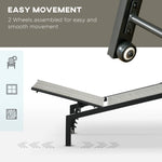 Two wheels to move around easily, with anti-slip protectors on front legs