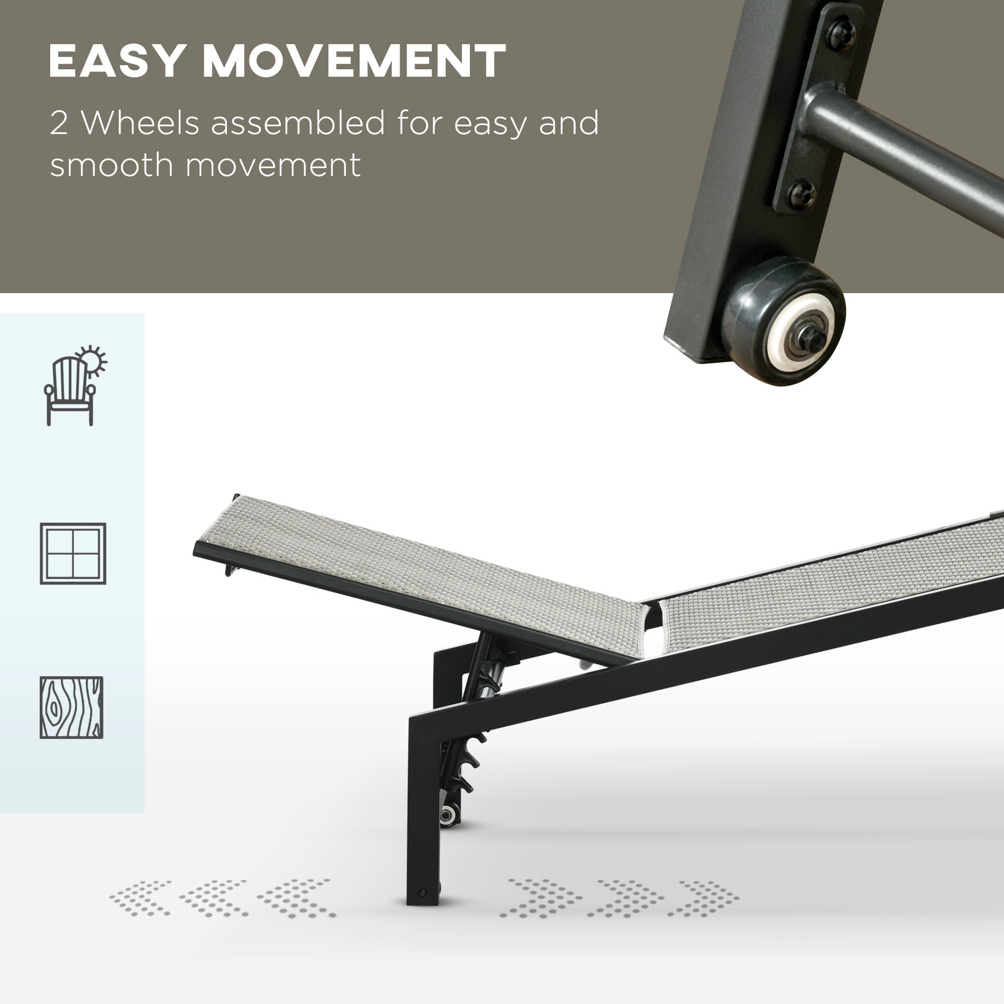 Make it minimal: a no-fuss approach to relaxing in the sun with this lounger. Using a steel frame for a strong core, left in its natural state, it's paired with a rattan seat for an outdoor-ready look, wherever you want it. The back can be changed between five different positions - whether completely flat or at an angle, you can relax in a position you want. Two wheels to complete - move it around easily.