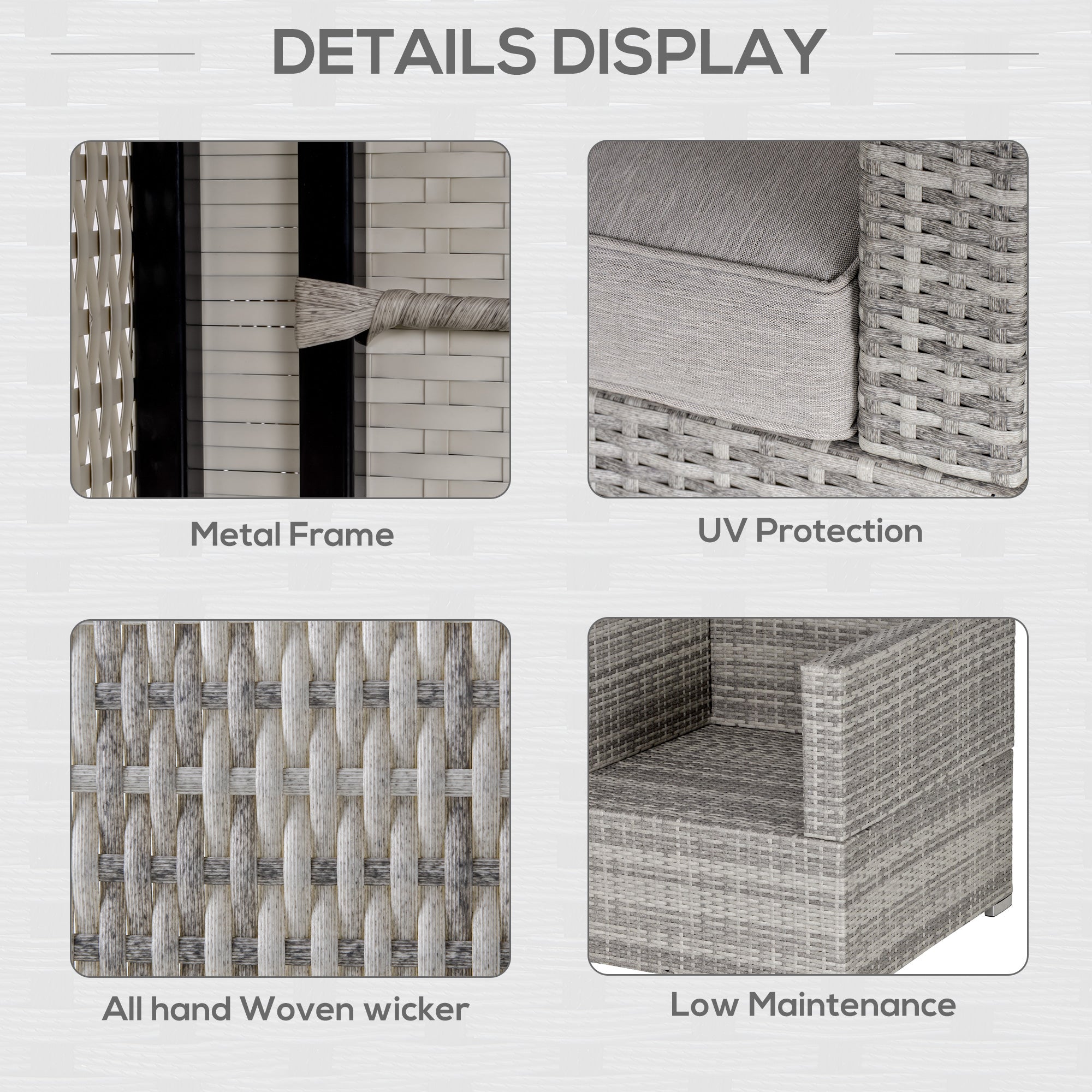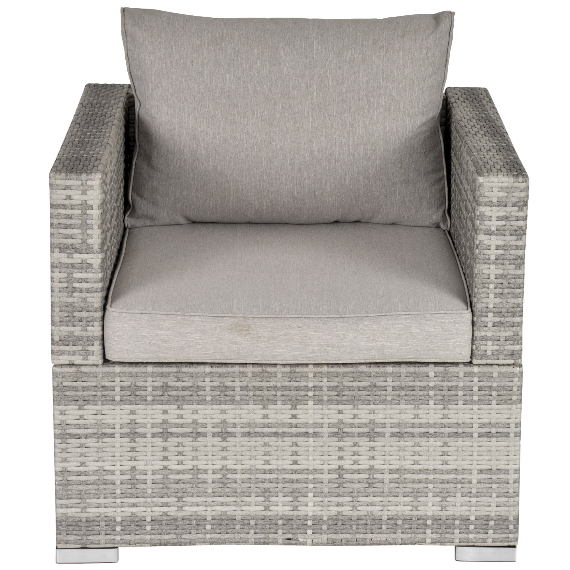 Single Seater Rattan Chair Sofa with Padded Cushions, All-Weather PE Wicker Weave Garden Armchair with Armrests, Grey