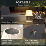 Outdoor Solar Table Lamp, Cordless LED Desk Lamp with Rechargeable Battery, Dimming Brightness, USB