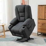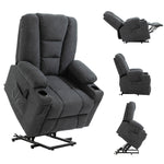 Oversized Riser and Recliner Chairs for the Elderly, Fabric Upholstered Lift Chair for Living Room with Remote Control, Side Pockets, Cup Holder, Charcoal Grey