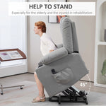Oversized Riser and Recliner Chairs for the Elderly, Fabric Upholstered Lift Chair for Living Room with Remote Control, Side Pockets, Cup Holder, Light Grey