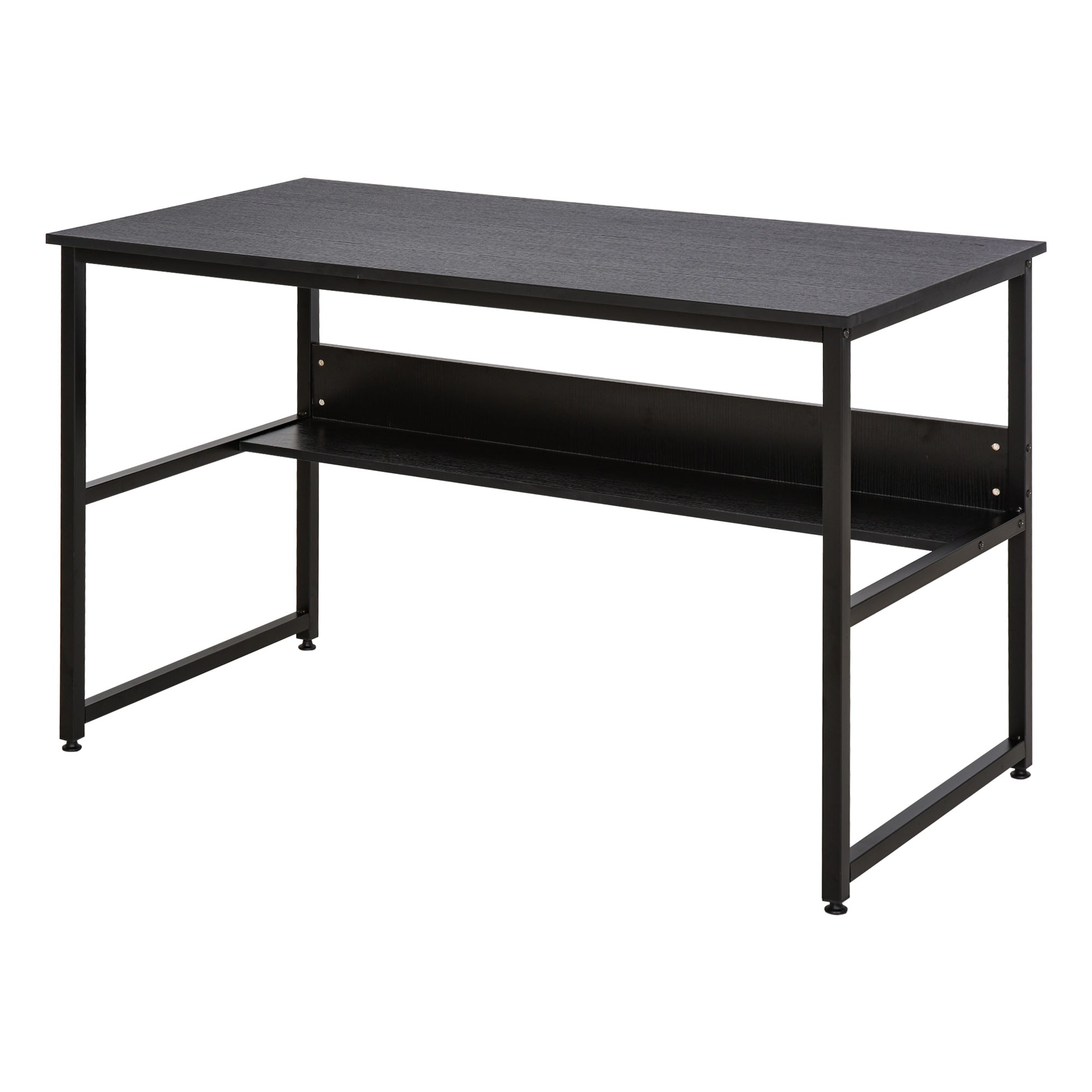 Create the perfect environment for working from home with this two-tier work desk. It uses a metal frame for a tough and sturdy structure, with thick particle board shelves for a solid and flat surface to work from. Both shelves are covered with melamine, so they are smooth and are protected against lighting marks and damage. The bottom shelf features a back panel, which allows safe storage and out of sight. This office table can make your work enjoyable.