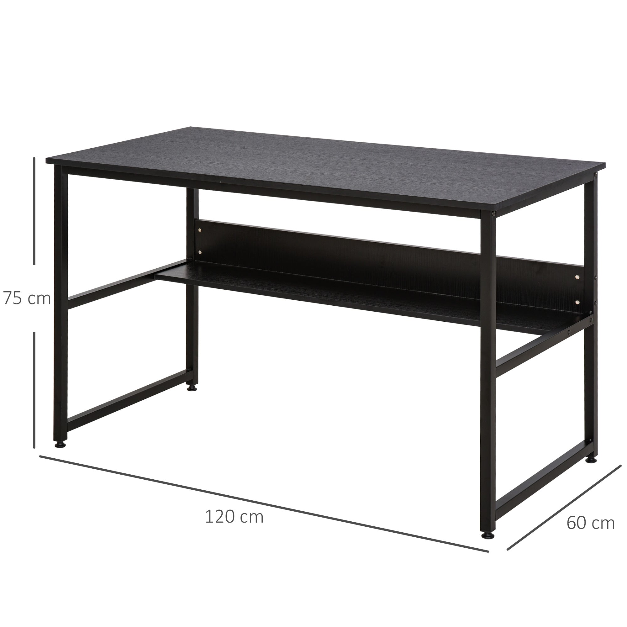 Computer Desk with Storage Shelf, 120 x 60cm Home Office Desk with Metal Frame, Study Table, Easy Assembly, Black
