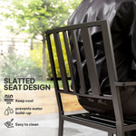 Make it minimal in your garden with these chairs. Made from metal in a bare design, they are simple and casual - dress up easily if you wish. The galvanised steel means they are both strong and keep you supportive. A set of two to sit with company - expand seating space by adding more sets if you wish. Can be stacked to save space.