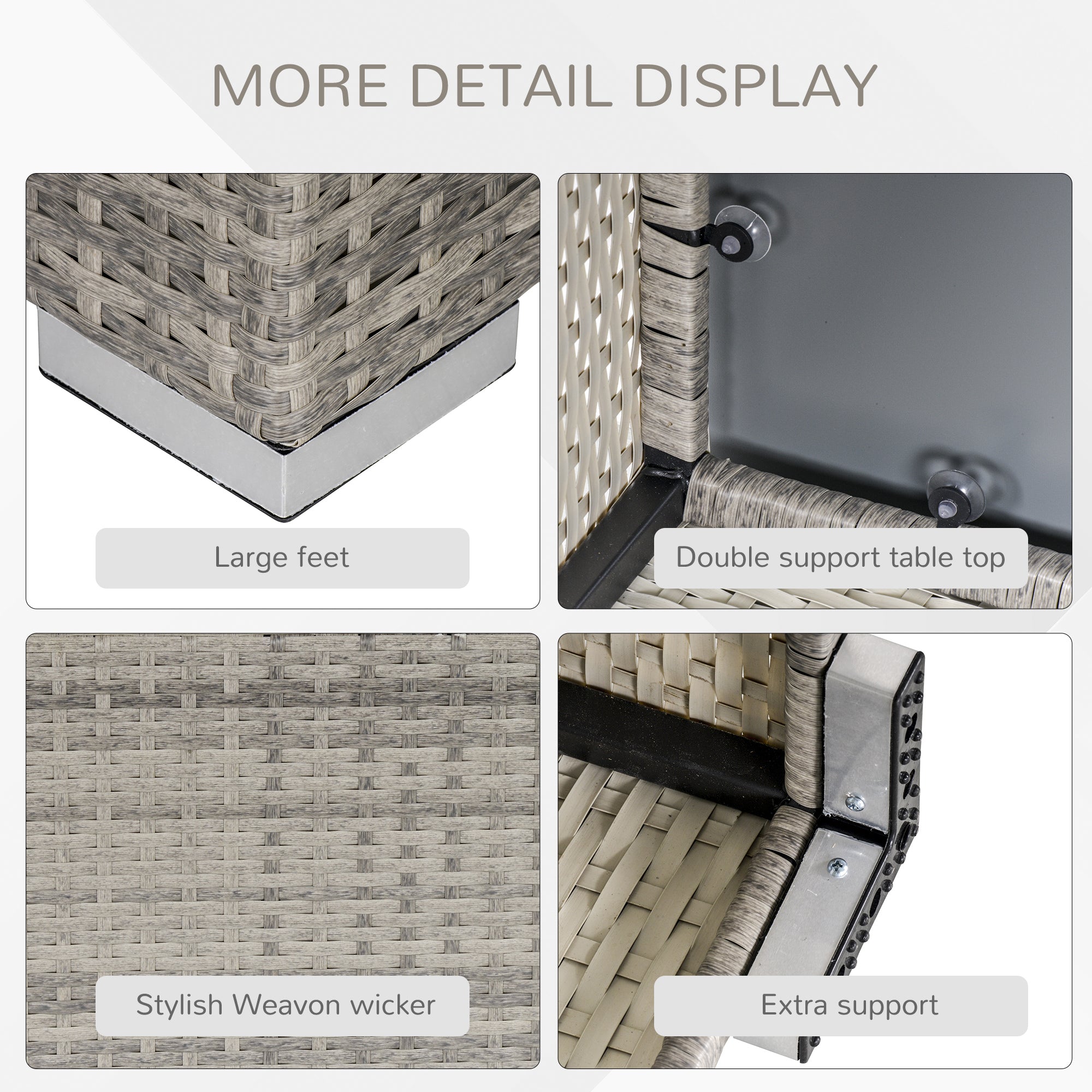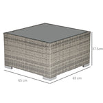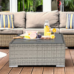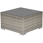 Square PE Wicker Rattan Table, with Glass Top - Light Grey