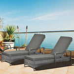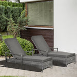 PE Rattan Sun Loungers set of 2 with Cushion, Outdoor 2 Pieces Garden Sunbed Furniture with 4-Level Recliner Backrest, and Armrest, Grey