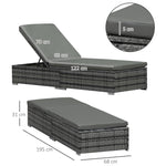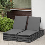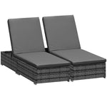 PE Rattan Sun Loungers with Cushion, Outdoor Garden Sunbed Furniture with 5-Level Recliner Backrest, and Armrest, Set of 2, Grey
