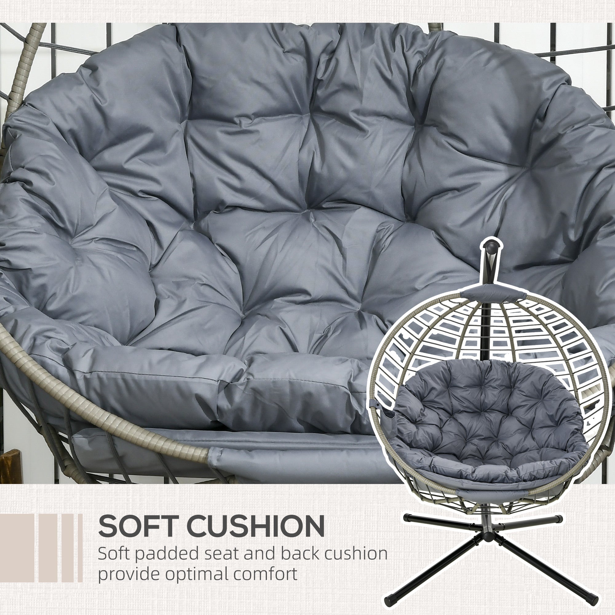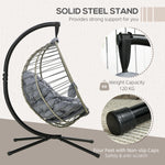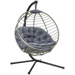PE Rattan Swing Chair, Outdoor Hanging Chair with Metal Stand, Thick Padded Cushion, Foldable Basket and Cup Holder, for Indoor and Outdoor, Grey