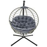 Make the most of your lazy days - do it with this egg swing chair with stand. The curved back, spacious seat and soft padded cushion make this a super comfortable piece to relax in whenever you want. Made from steel, the frame is strong, with a four long-legged base to help keep the balance. The seat basket can be taken off the frame and folded up - so when the sunny season is over, or you want to change up your outdoor space, you can store this chair away easily.