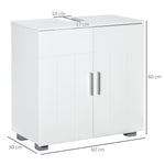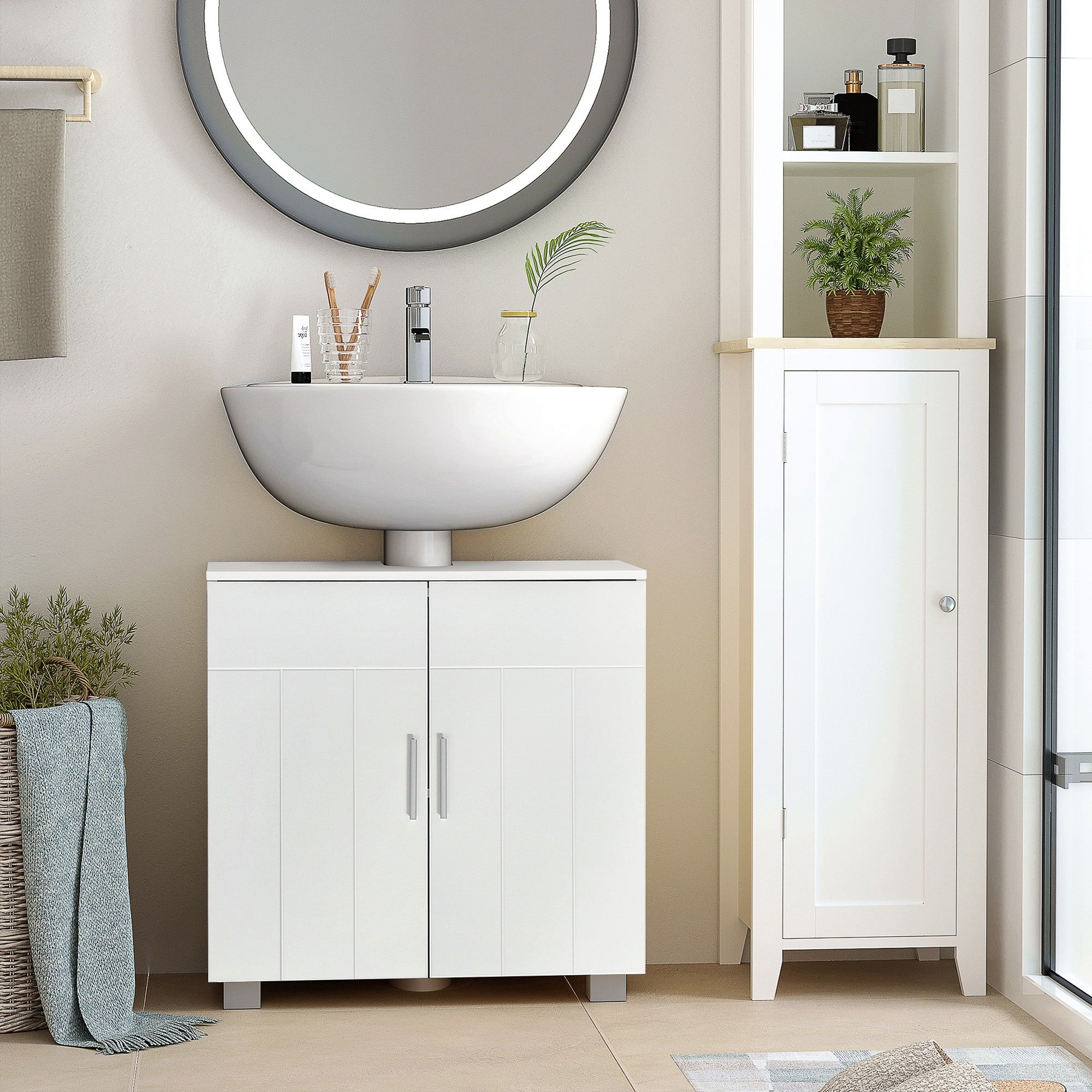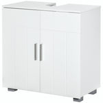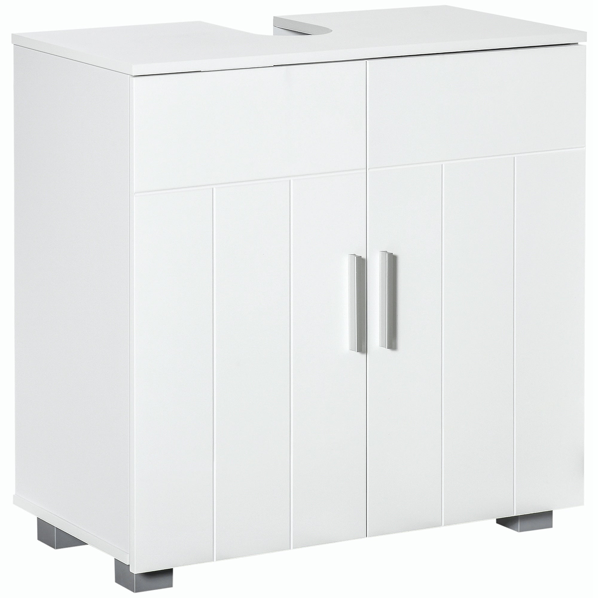 This under sink cabinet is great for expanding space where room is tight. It has been designed to fit under pedestal shaped sinks. The clean boxy shape and white colour complements any bathroom style; its MDF formation is sturdy with a water-resistant finish. Inside, there's a generous amount of space, with an adjustable shelf to fit differently-sized items easily. Finished with metal handle on the doors to open and close easily.