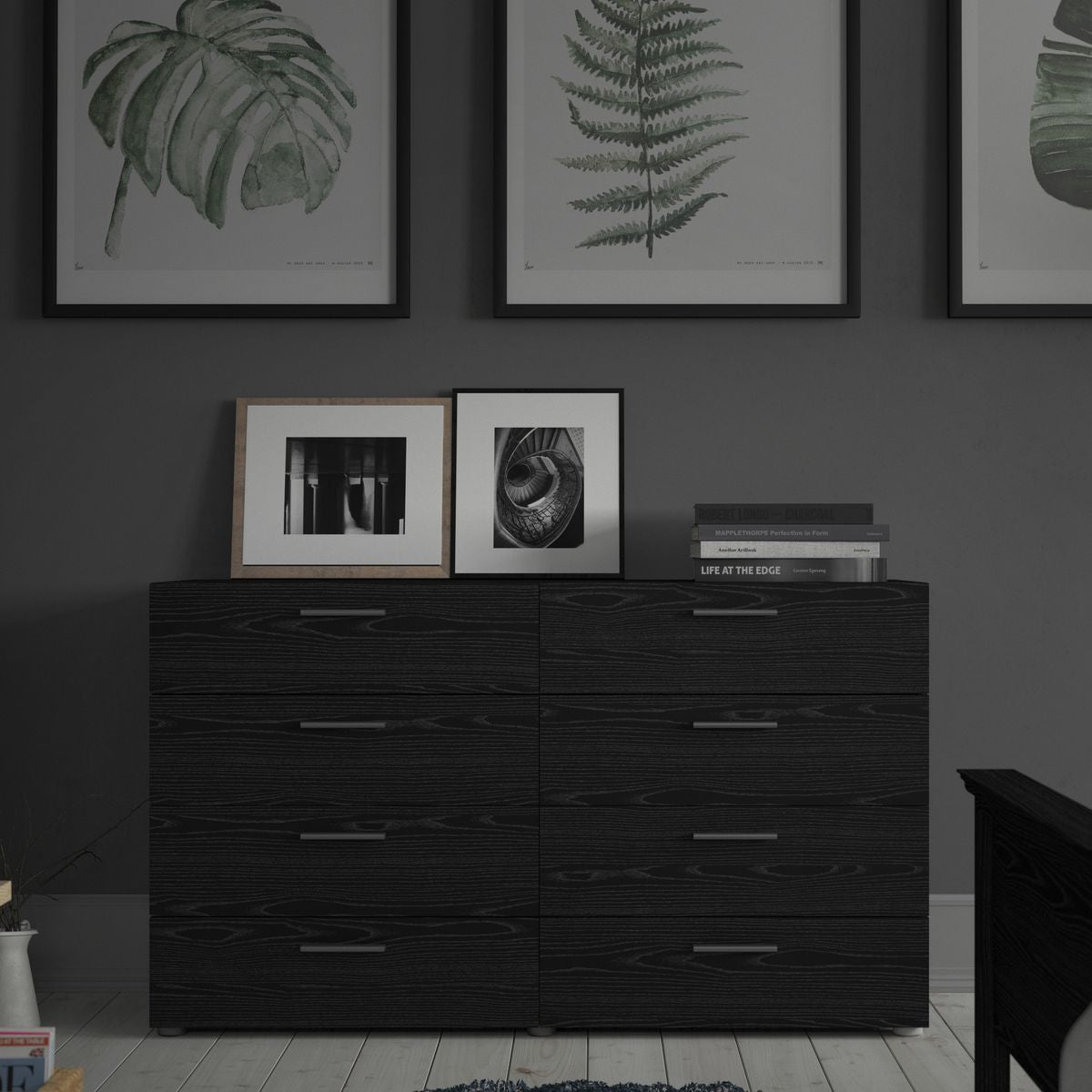 Maximise your storage space for your clothes with these 8 drawers. Perfect for your bedroom, home office or living area. A simplistic design that will not go unnoticed in in black Woodgrain.