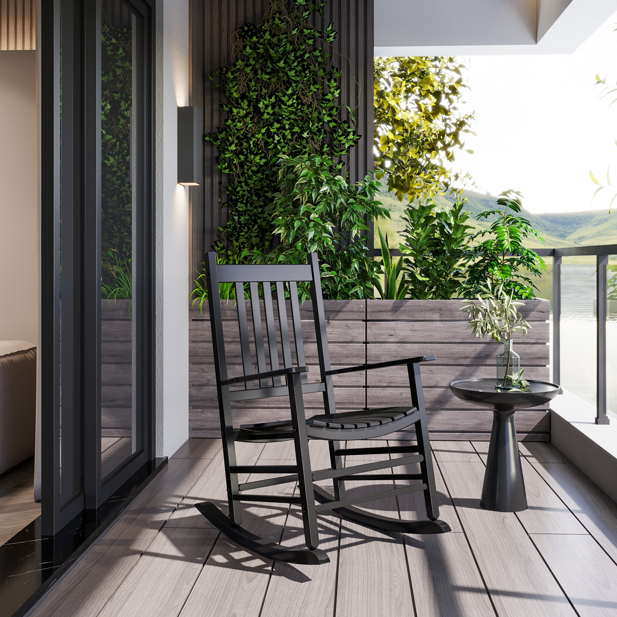 Outdoor Porch Rocking Chair Armchair Wooden Patio Rocker Balcony Deck Garden Seat Black