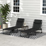 Portable Sun Lounger Set of 2, Folding Camping Bed Cot, Reclining Lounge Chair 5-position Adjustable Backrest with Side Pocket, Pillow for Patio Garden Beach Pool, Black