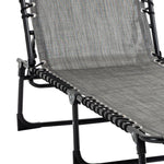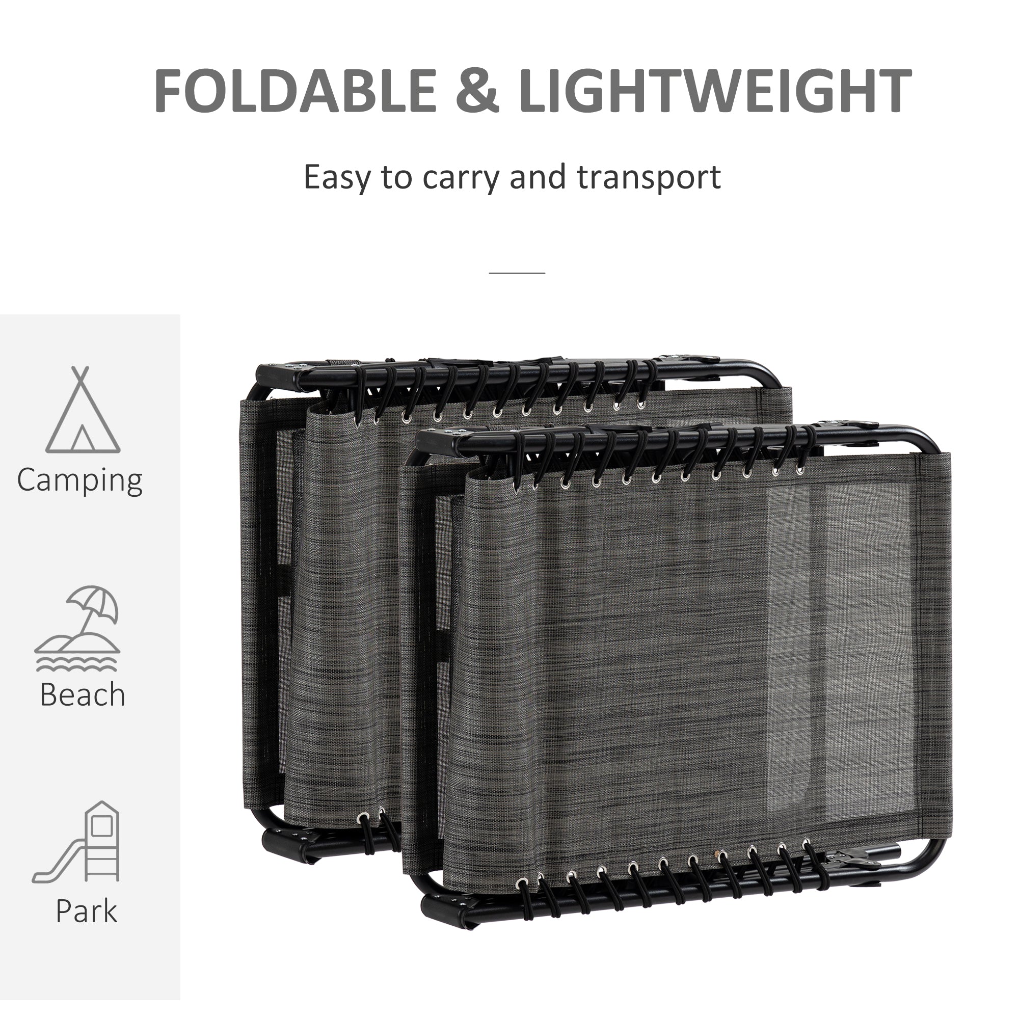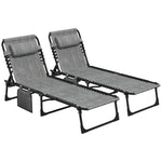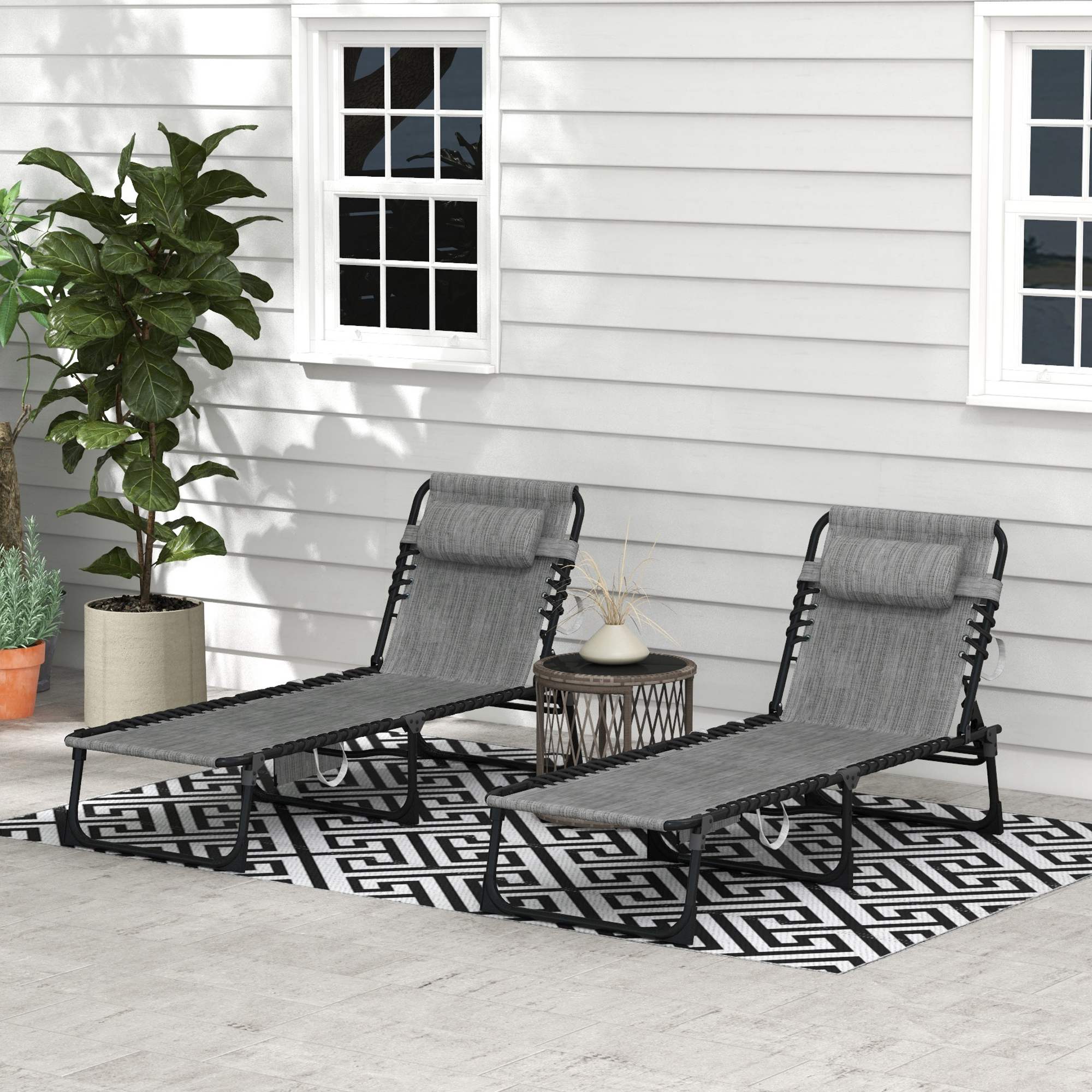 Portable Sun Lounger Set of 2, Folding Camping Bed Cot, Reclining Lounge Chair 5-position Adjustable Backrest with Side Pocket, Pillow for Patio Garden Beach Pool, Mixed Grey