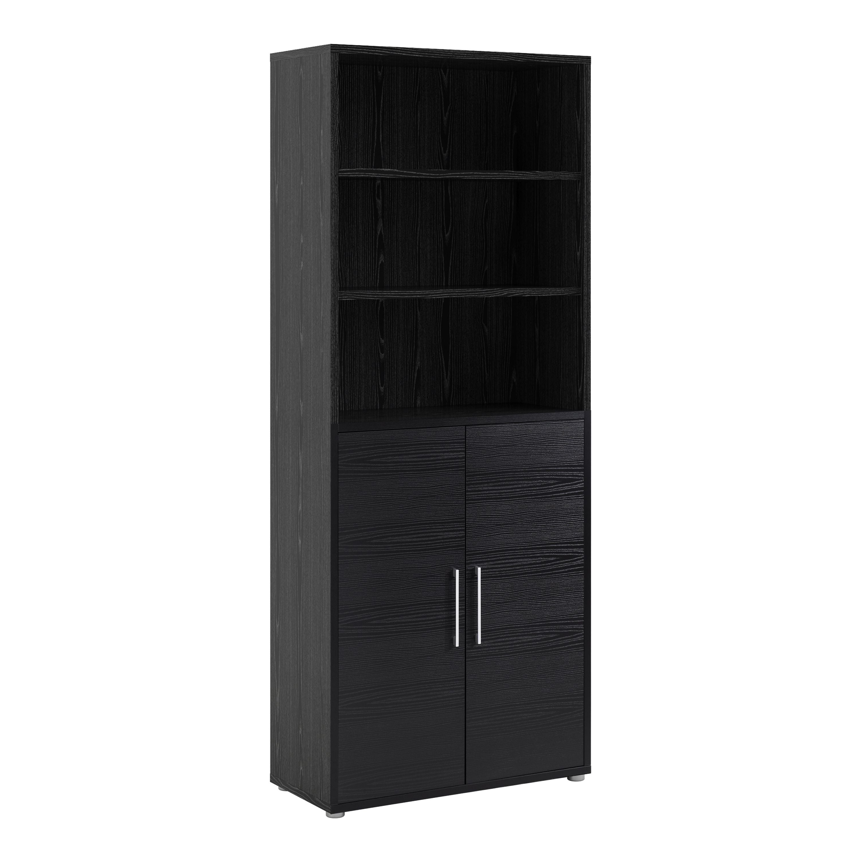 Prima Bookcase 3 Shelves with 2 Doors in Black Woodgrain
