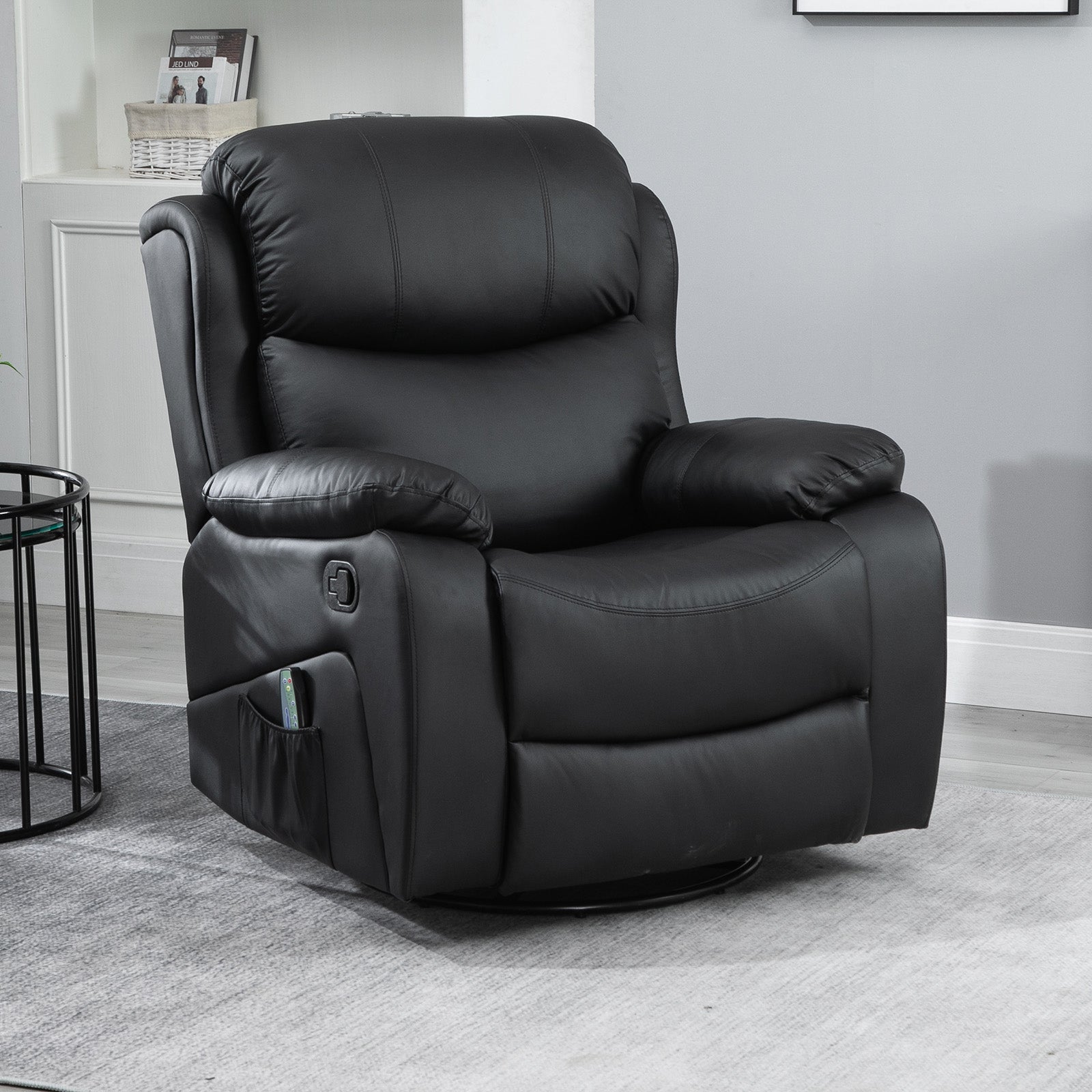 PU Leather Reclining Chair with 8 Massage Points and Heat, Manual Recliner with Swivel Base, Footrest and Remote, Black