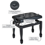 This piano bench is formed of a solid wood base for support, with a padded top for comfort. Faux leather upholstery for a sleek look. Height adjustable between 45-55cm to suit different height players. Play in style and comfort.