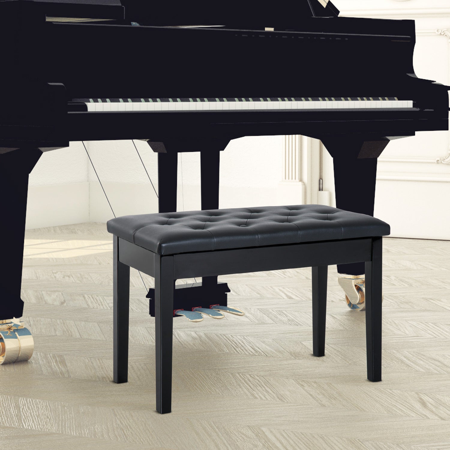 This piano bench,, gives you more than just a place to sit whilst practicing. It features a small storage compartment underneath the seat - enough room for sheet music and papers. A wooden frame for a strong structure, supporting you as you play; the two-seater size means you can practice with another player. Padded seat for comfort, wrapped in faux leather for a forever-stylish look.