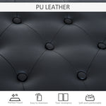 Padded seat for comfort, wrapped in faux leather upholstery. 13 tufted buttons on the top