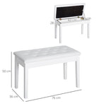 PU Leather Upholstered Piano Stool Makeup Stool Bench Dressing Table Seat with Storage 76x36x50cm, White