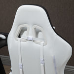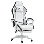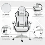 Computer Gaming Chair, PU Leather Desk Chair with Footrest, Swivel Task Chair with 135° Reclining Back and Lumbar Support, PC Chair for Adults, White and Black